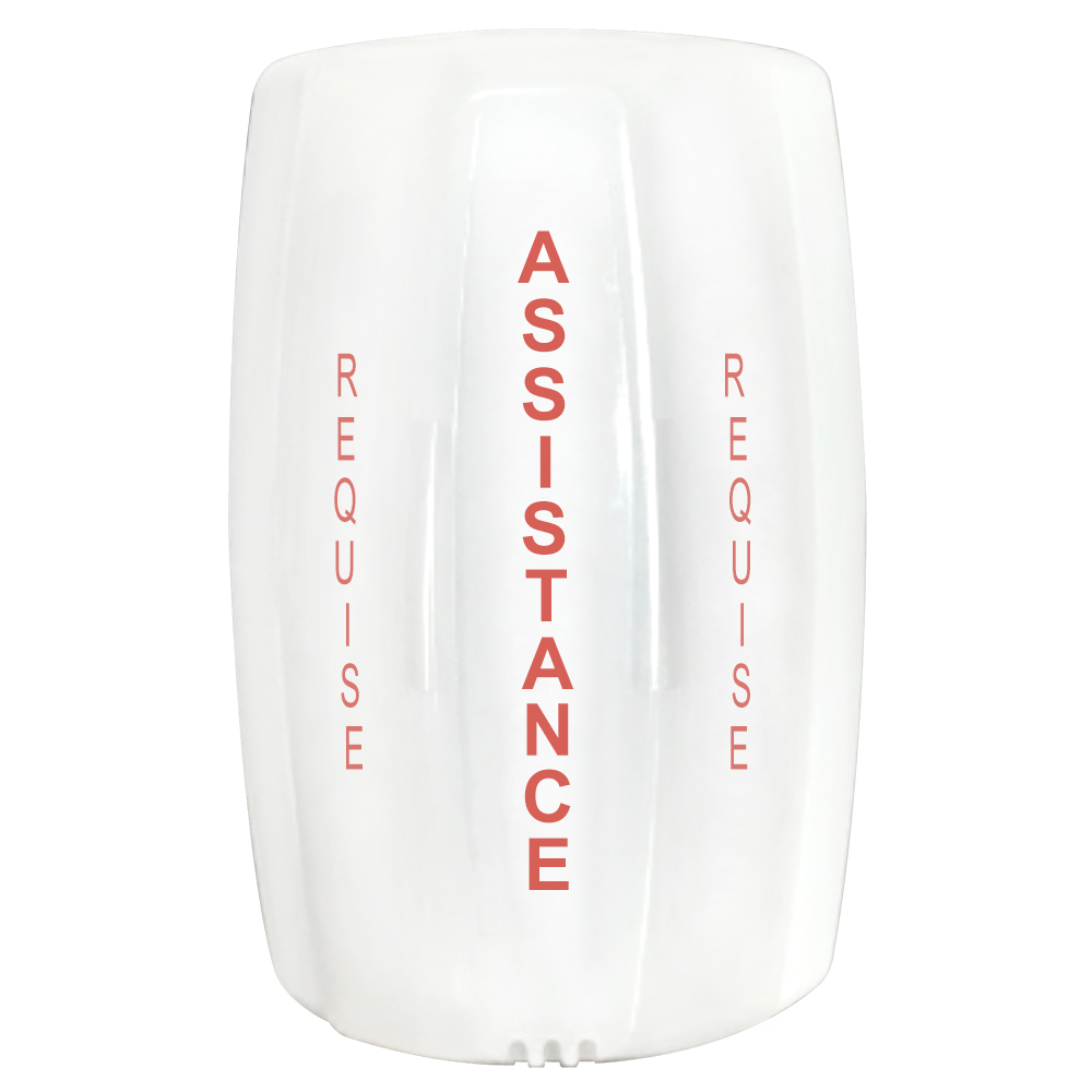 CM-AF140 Series single gang LED dome lights, with adjustable sounder, provides critical messaging to building occupants. The weather and vandal resistant signal device is designed to provide a highly attractive and unobtrusive appearance in any application, while also meeting the latest requirements of the Ontario Building Code for emergency notification in universal restrooms. The dome light lens has 'Assistance Required' text, in red. French and bilingual language text is available.