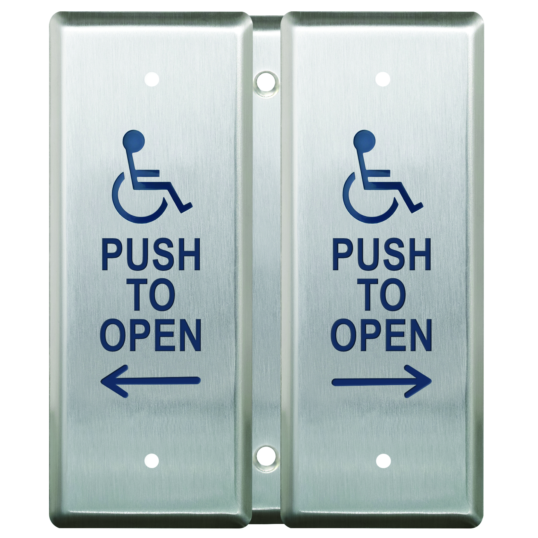 'WHEELCHAIR' symbol and 'PUSH TO OPEN', blue Add /4 to model #