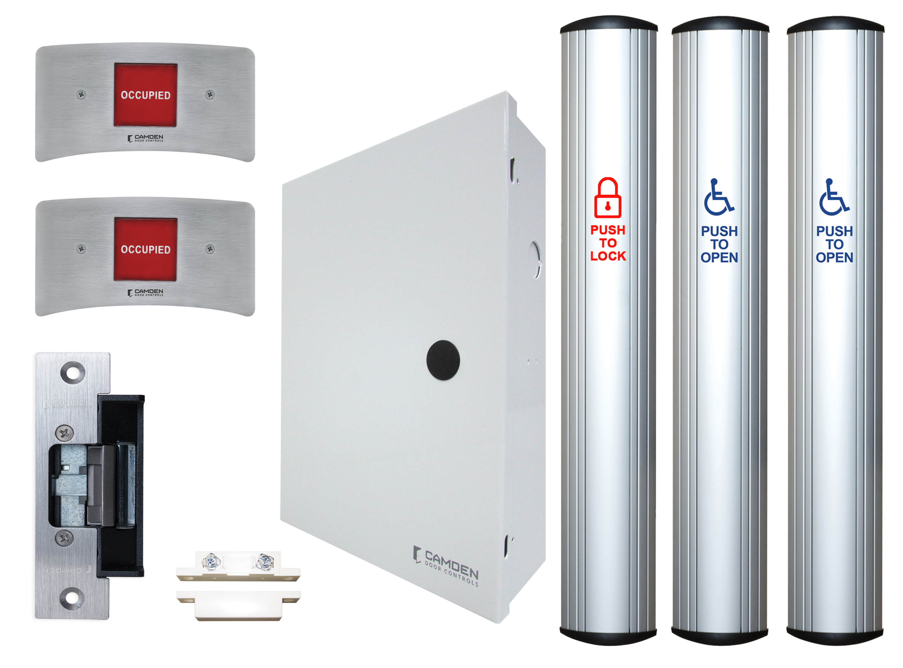 Flush Mount Two Door Restroom System CX-EMF-2 also provides option for timed unlock and strobe annunciator illumination.