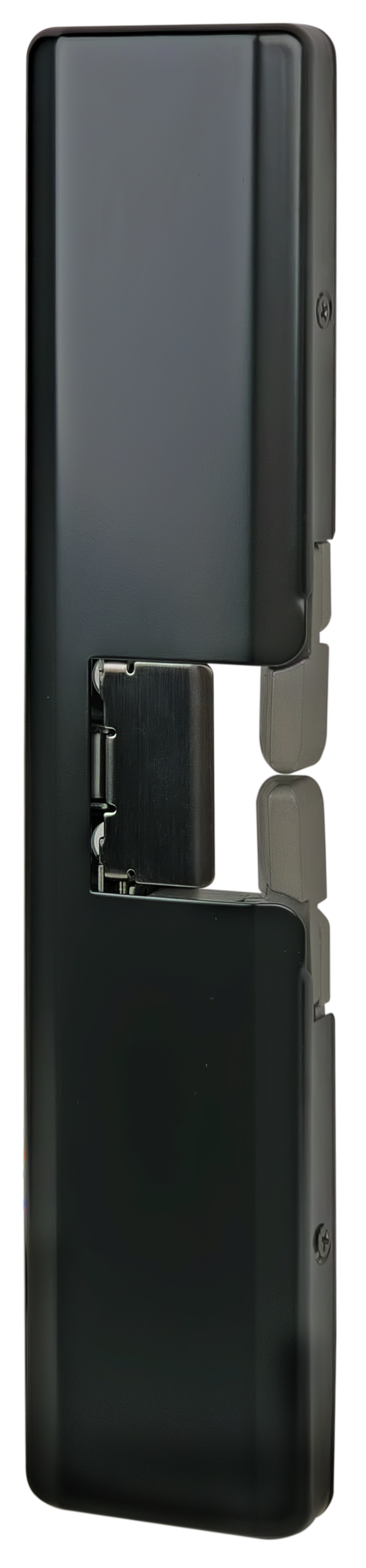 1/2" Surface mount Grade 1 RIM strike with preload, all-black finish, 12/24V, AC/DC, fail safe/fail secure, with ‘plug-in’ latch monitor assembly & metal mounting jig
