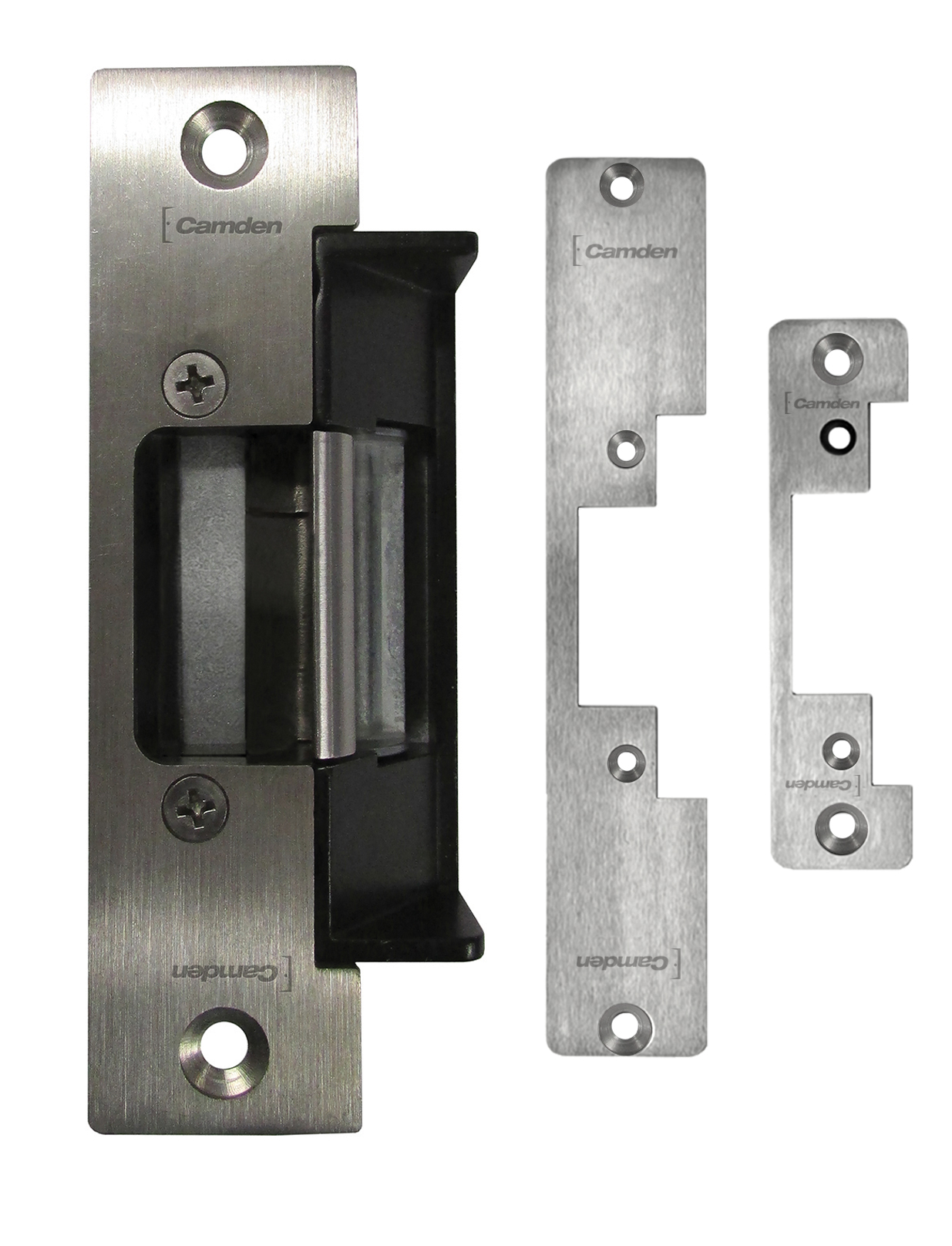 Camden's new CX-ED2079 low profile 'Universal' grade 2 ANSI electric strike for cylindrical locksets provides exceptional value with 3 faceplates, and selectable 12/24V AC/DC voltage, fail safe/fail secure operation and horizontal adjustment of the strike body.