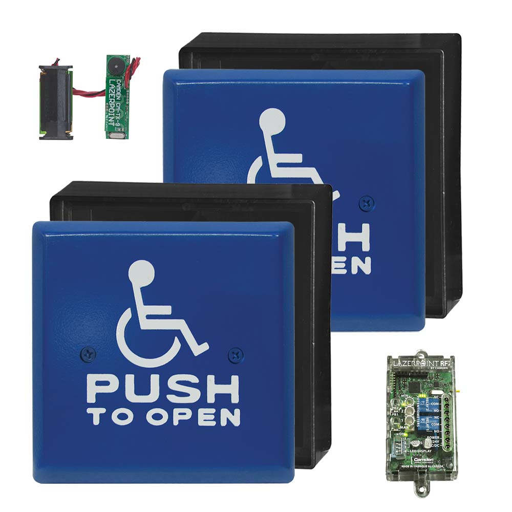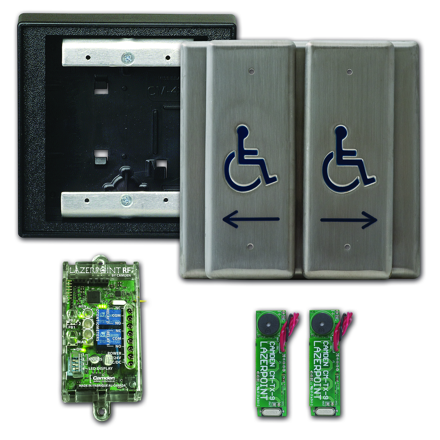 Lazerpoint RF is a completely new type of wireless solution for automatic door operators that introduces proven 915Mhz. spread spectrum wireless technology to the market. The system encompasses the widest range of transmitters, receivers, activation devices and switch enclosures available today.