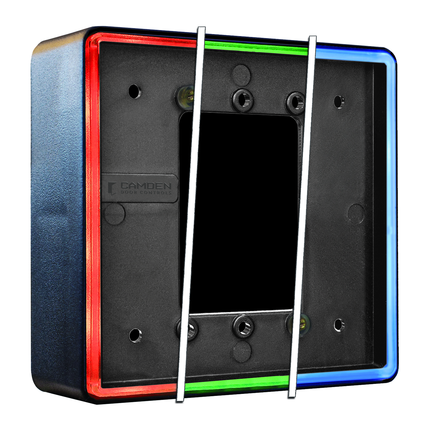 4-1/2" Square (concealed screws) push plate, c/w sounder, illuminated RED/GREEN/BLUE flush mount CM-55i box