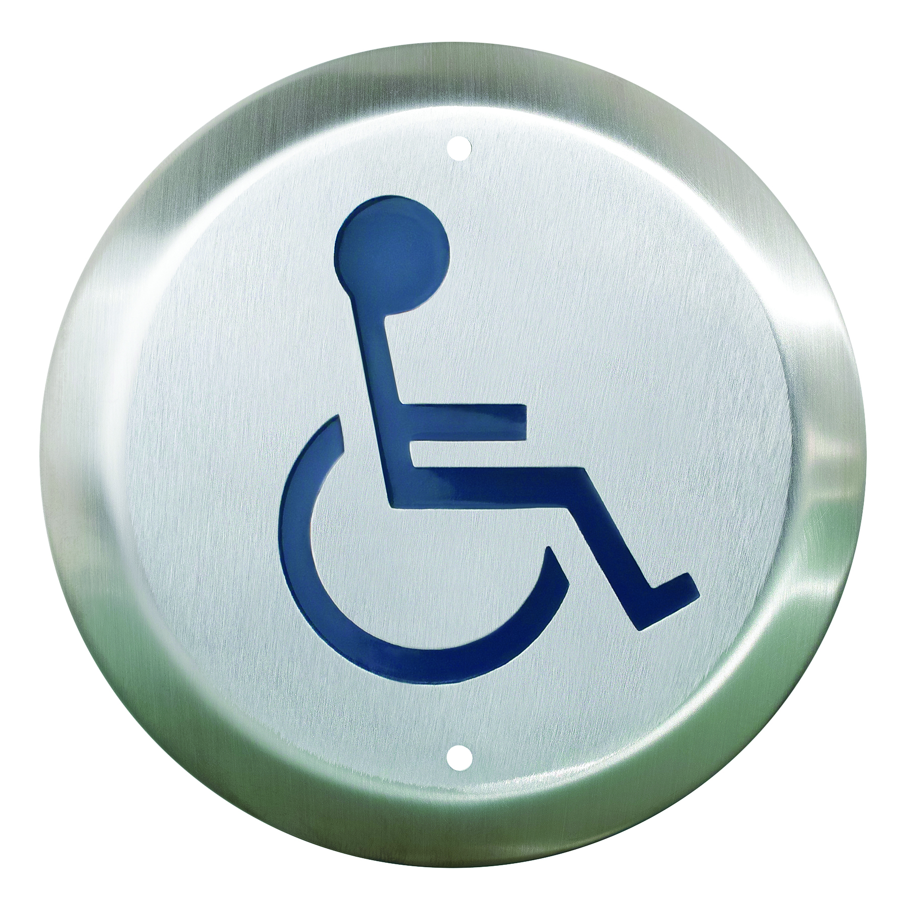 'WHEELCHAIR' symbol and 'PUSH TO OPEN', blue Add /4 to model #