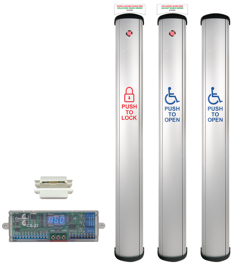 CX-WC Series barrier free restroom control kits include everything needed for a complete installation, including control relays, activation switches, annunciators, electric strikes and power supplies.