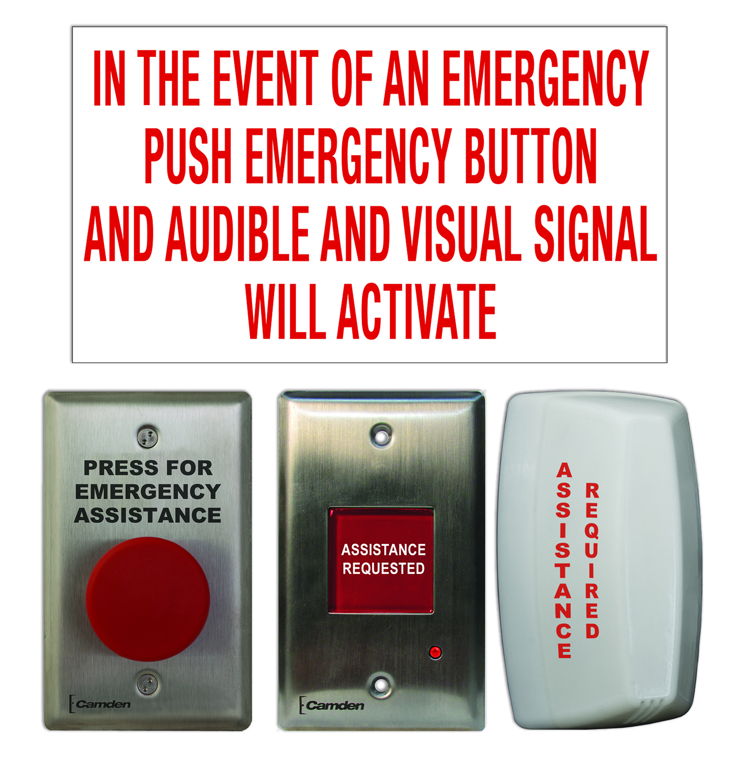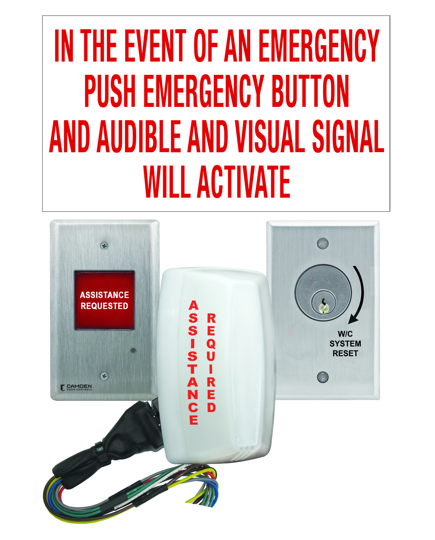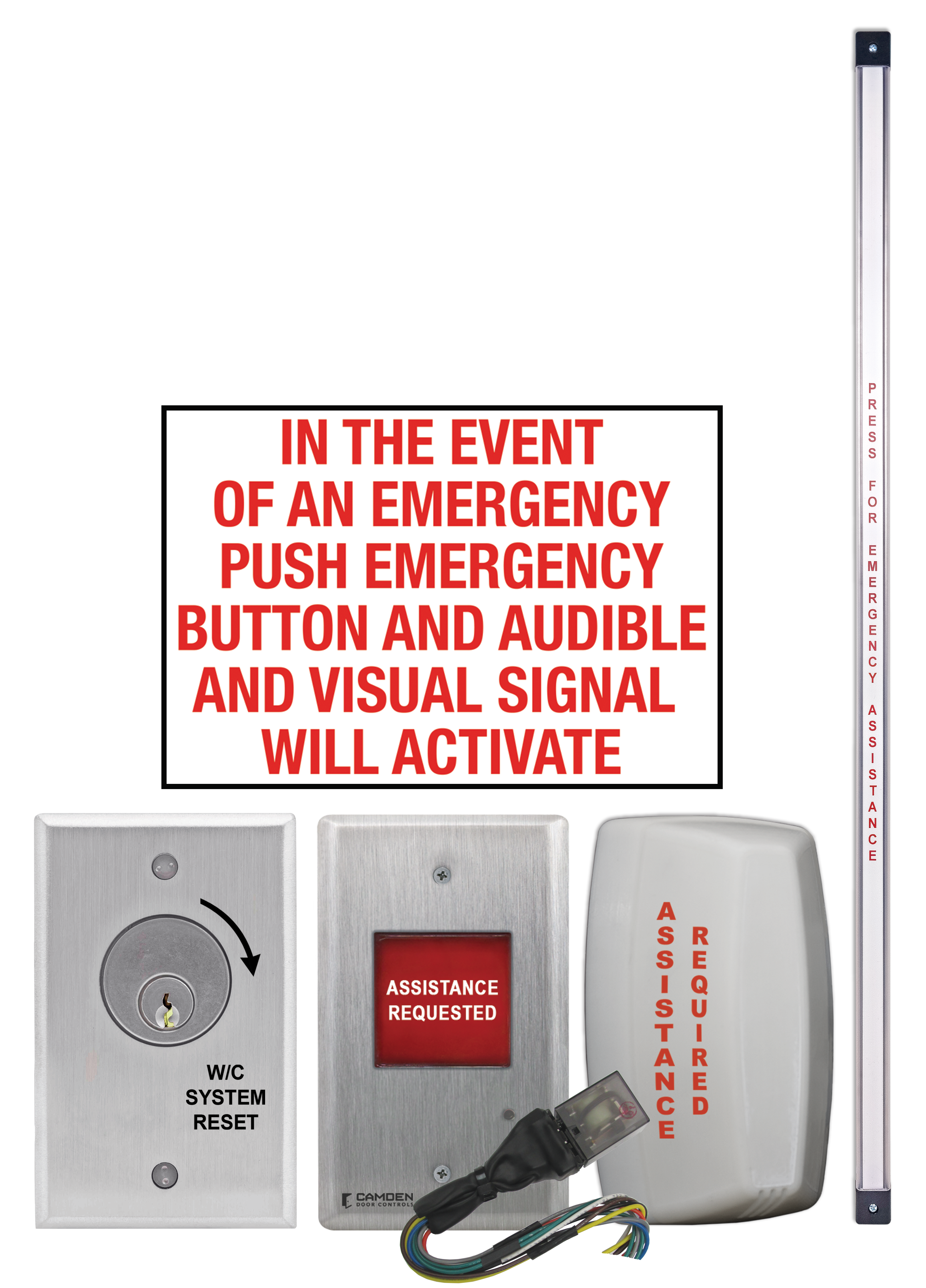 CX-WEC Series Emergency Call Systems KitsCamden CX-WEC Series is an equipment package designed to meet the latest building code requirements for universal restrooms. Emergency Call for Universal Restroom Kits may be installed in restrooms without an automatic door operator or with CX-WC Series barrier free restroom kits (with operator).