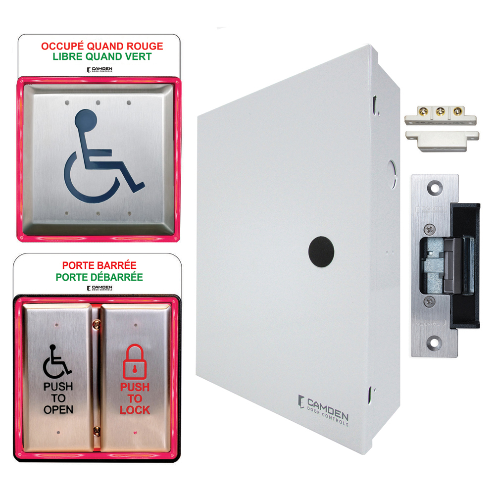CX-WC Series barrier free restroom control kits include everything needed for a complete installation, including control relays, activation switches, annunciators, electric strikes and power supplies.
