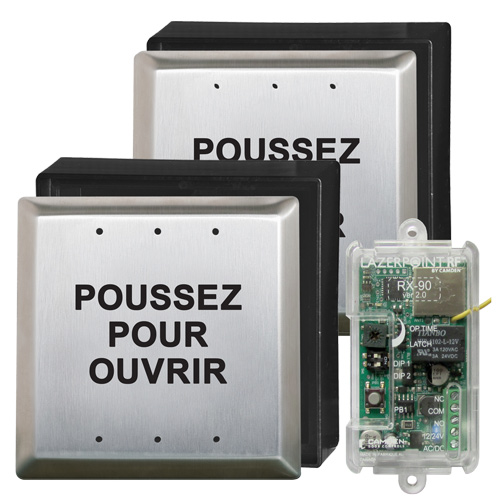 Lazerpoint RF is a completely new type of wireless solution for automatic door operators that introduces proven 915Mhz. spread spectrum wireless technology to the market. The system encompasses the widest range of transmitters, receivers, activation devices and switch enclosures available today.