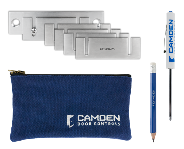We back our strikes with a full range of support that makes installing a Camden strike easier than any other! Strike marking template set, CX-STR-TMPKIT, includes a set of 5 heavy-duty metal templates for Camden strikes, conveniently packaged in a branded pouch, complete with a screwdriver and marking pencil!